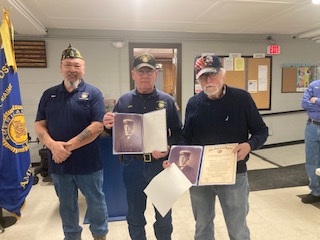 Recently two members of Charles S. Hatch Post #79 were recognized for their exceptionally meritorious service and outstanding achievement supporting the American Legion and local community. Berwick Post Commander Mike Colby presented The American Legion Silver Medal of Merit to longtime legionnaire Lynn K. Rendell (45 years and counting!) and 15-year member Andrew L. Buckman.