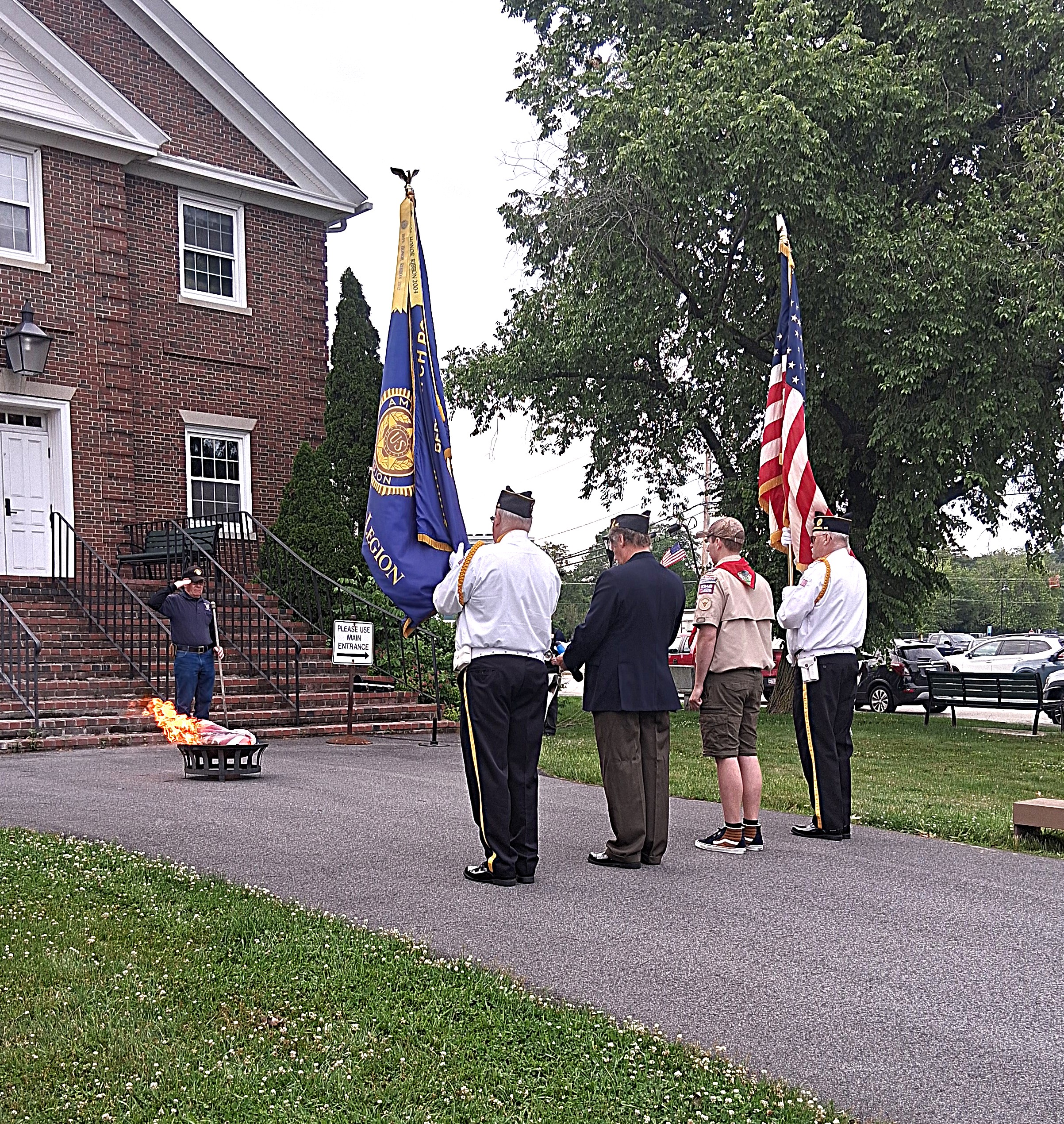 On June 14th, 2025, the members of American Legion Post #79 conducted their annual Flag observance and flag retirement ceremony. The Post has hosted this annual event for decades. Brian Cincotta, the Post Chaplain at the time, an Air Force and Air National Guard veteran of 26 years and a social science teacher in the Berwick School system for 35 years came up with the idea of conducting an annual public observance. (Of note, Brian was chosen Berwick’s 2016 Citizen of the Year)